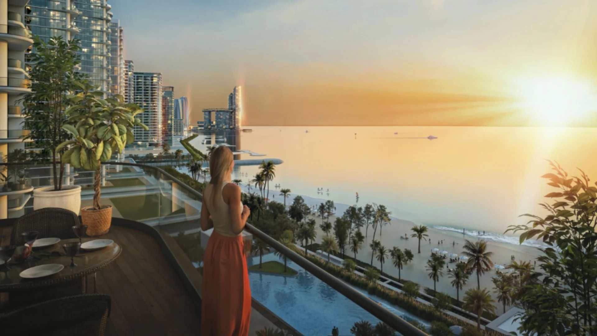 Als „Skyline by the Shore“ gestaltet, folgt die Architektur harmonisch der Küstenlinie – klare Silhouetten, weiche Texturen und großzügige Glasfassaden spiegeln Meer und Horizont wider. Das Projekt bietet 1‑, 2‑ und 3‑Bedroom Beachfront‑Apartments, jeweils mit Balkonen oder privaten Gärten, die Meer-, Grün- und Amenity‑Blicke einrahmen.